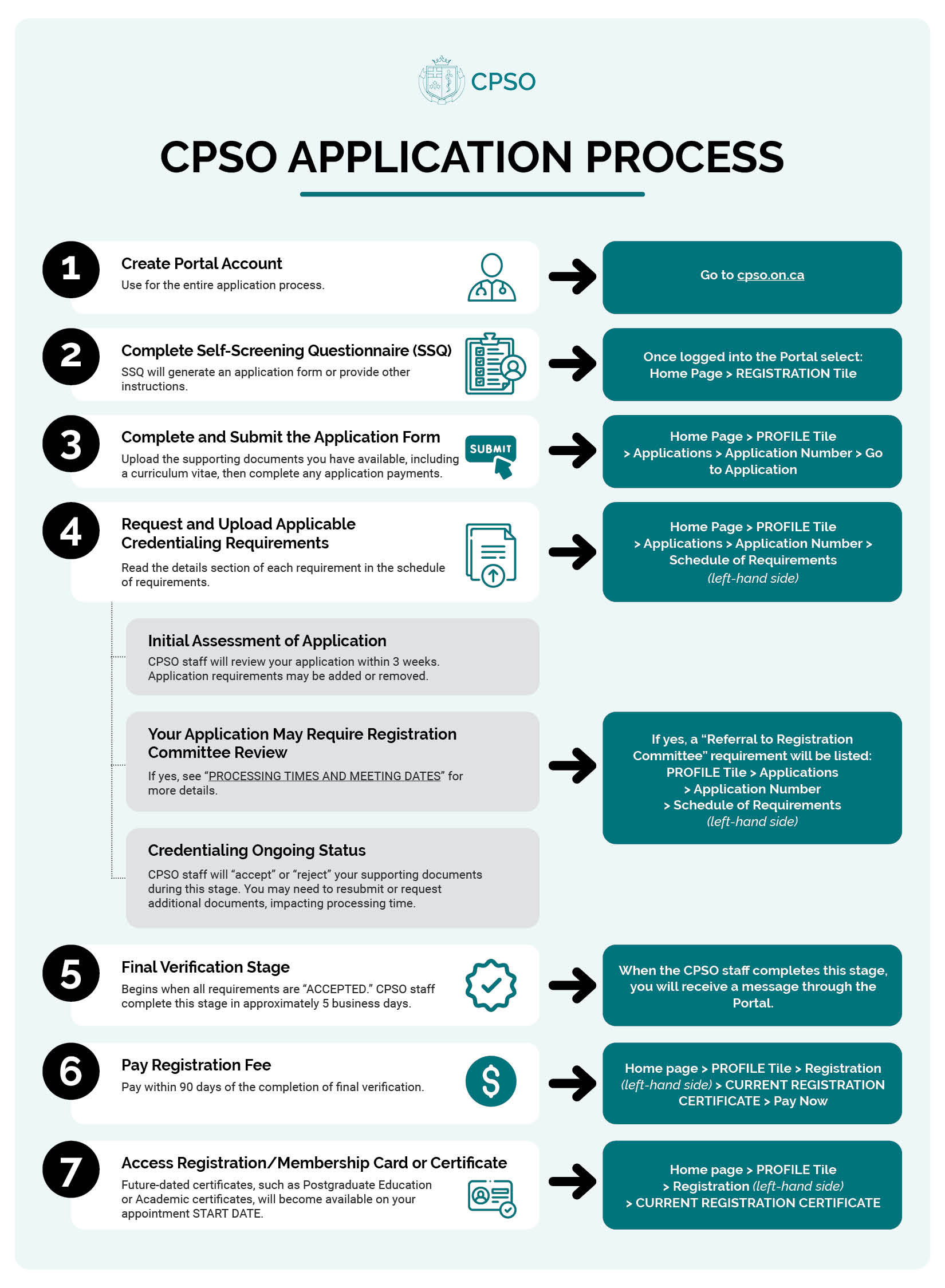 When the CPSO staff completes this stage, you will receive a message through the Portal.
